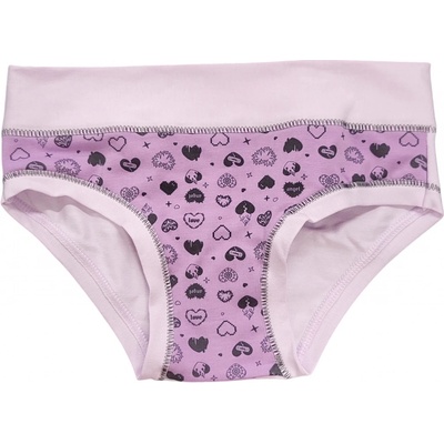Dívčí kalhotky Emy Bimba zdobené obrázky srdíček, ve fialové barvě, bavlněné s plochými lemy a bez gumiček, velmi pohodlné, od 2 do 15 let Složení: 90 % bavlna, 10 %...