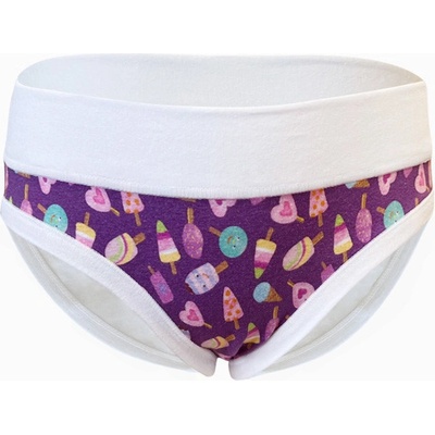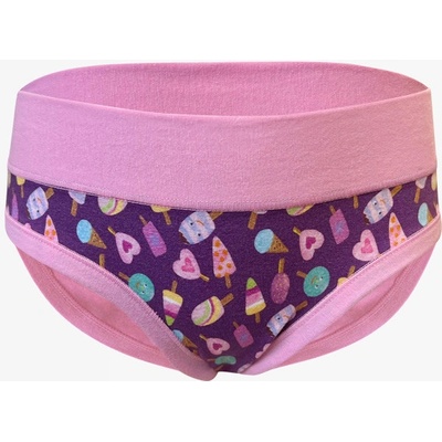 Dívčí kalhotky klasického střihu mají širší pasový lem. Nohavičky jsou začištěné úzkým lemem ze stejného materiálu. Přední díl zdobí potisk s motivem nanuků. Zadní díl a lemy...