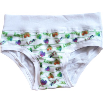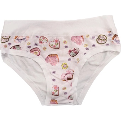 Dívčí kalhotky Emy Bimba zdobené obrázky srdíček a zadní díl kalhotek je jednobarevný bez obrázku. Bavlněné kalhotky s plochými lemy a bez gumiček, velmi pohodlné, od 2 do 15...