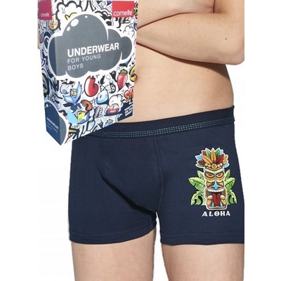 Chlapecké boxerky - Aloha. Pohodlné boxerky, ploché švy jsou šetrné k pokožce, široká guma je obšita v tunelu. Barevný vzor masky, připomíná nejedno prázdninové dobrodružství....
