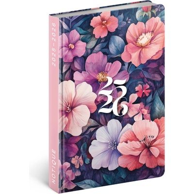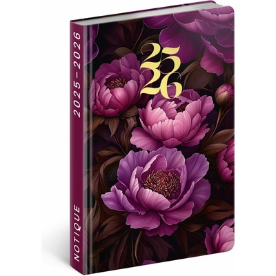 Diář týdenní B6 18měsíční diář Petito – Fialové květy 2025/2026, Elegantní a praktický diář s pevnými deskami a designovým motivem. Kalendárium začíná v červenci 2025 a končí v...