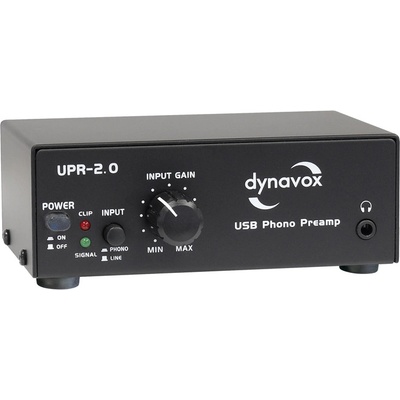 Phono předzesilovač s USB vstupem, AUX linkovým vstupem v černém provedení Kvalitní Phono předzesilovač pro gramofonové přístroje s nastavitelnou vstupní úrovní. Dynavox...