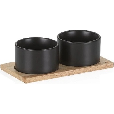 KELA Sada misek Gunten porcelán černý 3 kusy 23,5x12,0x7,5cm 10,0cm KL-10069 2 malé kulaté misky Porcelánová matná černá na dřevěném talíři Miska: 10 cm v 6,5 cm Dřevěný...