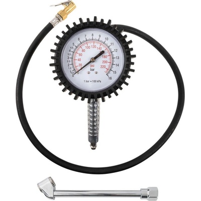 Profesionální hustilka na pneumatiky s robustní konstrukcí, mimořádně dlouhou gumovou hadicí a maximálním provozním tlakem 12 barů. Pokud je tlak příliš vysoký, je možné jej...