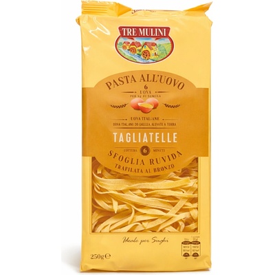 Tre Mulini Tagliatelle jsou kvalitní vaječné těstoviny vyrobené z pšeničné krupice a čerstvých vajec. Proces bronzového tažení (trafilata al bronzo) dodává těstovinám lehce...