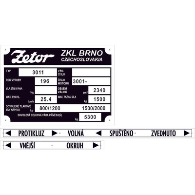 Výhodná malá sada štítků Zetor, výrobní štítek, popis ovládání vnitřního a vnějšího hydr. okruhů. Typ dle názvu produktu. Vše věrná replika původních štítku. Provedení elox....