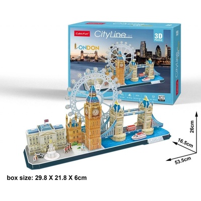 Okouzlující 3D panorama britského města Londýn. 3D puzzle - stavebnice ze série CityLine od CubicFun vyrobená ze speciálního materiálu - asi 3mm silné pěny potažené...