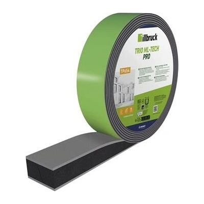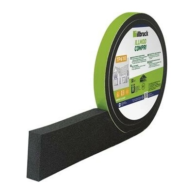 Profesionální těsnící páska v antracitové barvě značky Illbruck omezující prostup vzduchu, přenos vibrací a přerušující tepelné mosty v konstrukcích, trvale pružné těsnění...