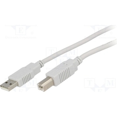 Kabel; USB 2.0; USB A vidlice, USB B vidlice; 3m; světle šedá