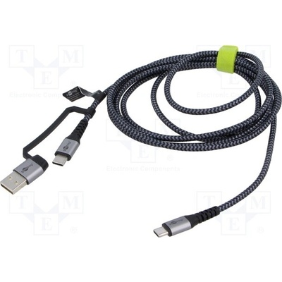 Kabel; USB 2.0; USB A vidlice,USB C zástrčka 2x; 3m; černo-šedá