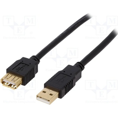 Kabel; USB 2.0; USB A zásuvka,USB A vidlice; zlacený; 3m; černá