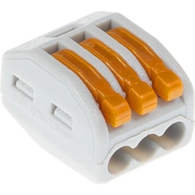3-vodičové svorky s páčkou pro snadnou montáž a demontáž kabelů. Všechny 3 vstupy jsou ve spojce propojeny jako jeden spoj. (neslouží k propojení 3 nezávislých propojení) ...