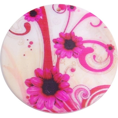 Perleťové placky potištěné, průměr 5cm. Vytvořeno ze silnější vrstvy perletě, tloušťka nemusí být na celé placce stejná, můžou se objevit přírodní zbarvení dohněda a také...