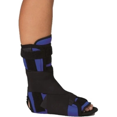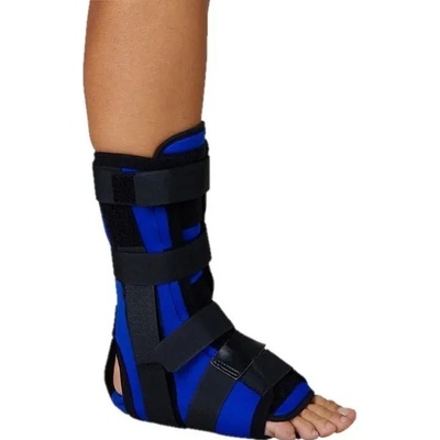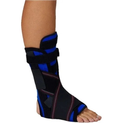 Ortéza k plné fixaci hlezenního kloubu, je opatřena dvěmi postranními plastovými dlahami a jednou duralovou a anatomicky tvarovatelnou dlahou v lýtkové části, jež společně...