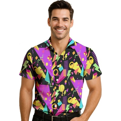 Zpátky do osmdesátek! Vrať se do doby disco koulí, divokých tanečních parketů a nekonečného funky stylu. Tahle barevná retro košile s krátkým rukávem v růžovém provedení je...