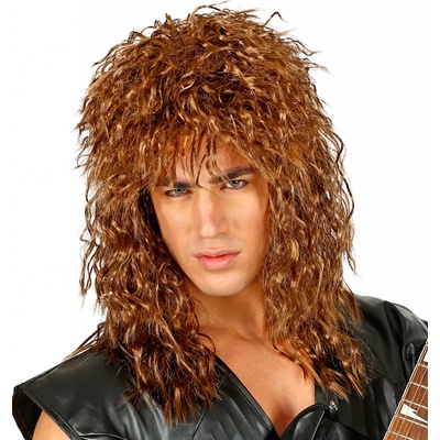 Paruka rocker, 80´léta. Paruka vhodná nejen jako doplněk k rokerskému kostýmu. Barva: hnědá Materiál: 100% polyester Určeno pro: pánská Typ paruky: dlouhá, vlnitá