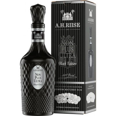 A.H.RIISE NON PLUS ULTRA black edition 0,7 L Rum A.H. Riise Non Plus Ultra Black Edition je limitovanou edicí a patří k nejexkluzivnějším verzím slavné edice Non Plus Ultra. Průměrná doba zrání je 25 let. Tato "černá edice" odkazuje i na speciální postup výroby zráním...