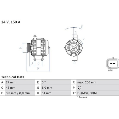 Výměnný díl: Napětí [V]: 14V generátor-nabíjecí proud [A]: 150A Způsob upevnění: Přímé upevnění Provedení generátoru: bez vakuového čerpadla Vzdálenost mezi řemenicí a...
