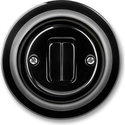 Kompletní vypínač ABB DECENTO řazení č.5 - sériový, lustrový je černý keramický vypínač v retro stylu určený pro domovní i kancelářskou elektroinstalaci. Černý kulatý retro vypínač z porcelánu se stane noblesním doplňkem každého interiéru.
