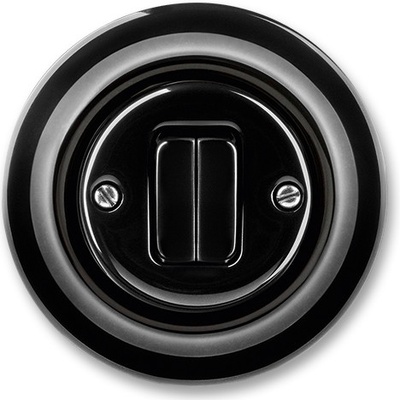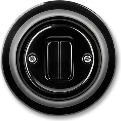 3559K-C87345 N Ovládač zapínací dvojitý, černá-porcelán 10 A, 250 V AC Upevnění do elektroinstalační krabice šrouby; bezšroubové svorky (pro vodiče 1-2,5 mm2). Design: DecentoŘazení: 1/0+1/0Materiál krytu: porcelánMateriál rámečku: porcelánBarva: černá