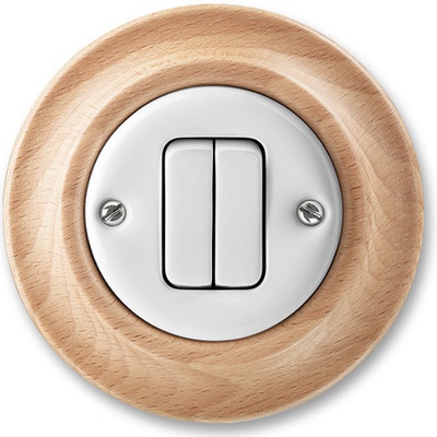 Ovládač zapínací dvojitý DecentoPorcelánový ovládač zapínací dvojitý Decento10 A, 250 V ACUpevnění do elektroinstalační krabice šrouby; bezšroubové svorky (pro vodiče 1-2,5 mm2). Design: DecentoŘazení: 1/0+1/0Materiál krytu: porcelánMateriál rámečku: dřevoBarva:...