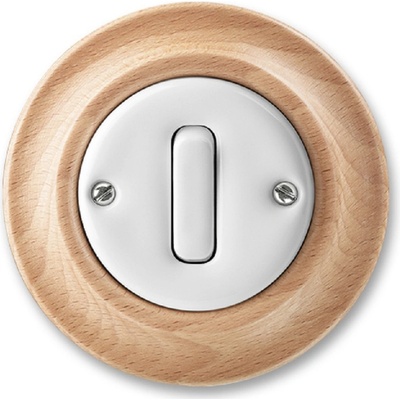 Přepínač střídavý DecentoPorcelánový přepínač střídavý Decento10 AX, 250 V ACUpevnění do elektroinstalační krabice šrouby; bezšroubové svorky (pro vodiče 1-2,5 mm2). Design: DecentoŘazení: 6 (1)Materiál krytu: porcelánMateriál rámečku: dřevoBarva: bílá/přírodní buk