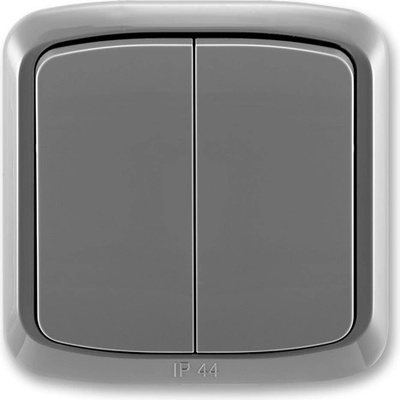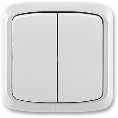 Přepínač sériový s krytem a rámečkem, řaz. 5, IP 44 10 AX, 250 V AC Upevnění šrouby nebo drápky, šroubové svorky (pro vodiče 1-2,5 mm?) Přístroj splňuje stupeň krytí IP 44...