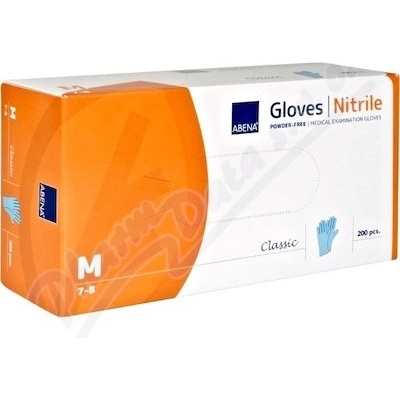 Vyšetřovací nitrilové rukavice Abena Classic, nepudrované. Dostupné ve velikostech S, M, L, XL - nesterilní. Lze je použít pro různé úkony, jako je úklid, ošetřování, manipulace s potravinami, laboratorní práce, manipulace s léky, apod.