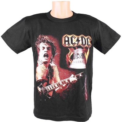 Oficiálně licencované pánské tričko hudební skupiny AC/DC. Na tričku je logo AC/DC a člen skupiny, co hraje na kytaru.