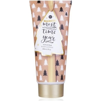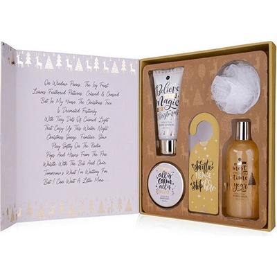 Koupelový set s vůní vanilky a pižma pro zimní relaxaci a péči o tělo v elegantním dárkovém balení, ideální pro každou příležitost.