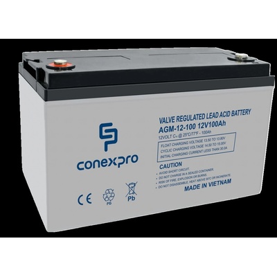Hermeticky uzavřený olověný akumulátor Conexpro AGM-12-100 o kapacitě 100 Ah a napětí 12 V je vhodný pro zdroje nepřerušovaného napájení, požární, zabezpečovací, přístupové,...