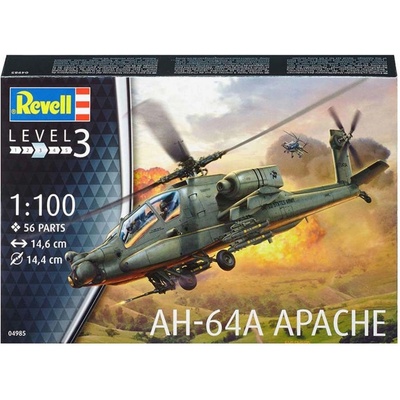 Revell AH-64A Apache Model Set vrtulník 1:100, 56 dílů Plastikový model vrtulníku REVEL 04985 ke slepení. Velikost: 1:100; 146x144mm. Balení obsahuje: 56 dílků ke slepení. ...