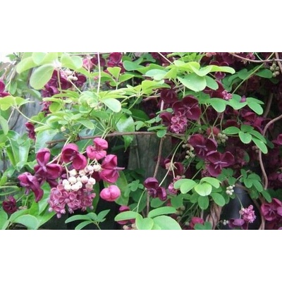 Akébie pětičetná - Akebia quinata, vytrvalá, opadavá ovíjivá dřevitá liána. Je jednou z nejotužilejších pnoucích rostlin využívá se pro pergoly, k pokryží konstrukcí, plotů a zdí. Roste rychle - přírustek až 2m, vzrůst až 8 m. Má tmavě fialové květy intenzivní vůně -...