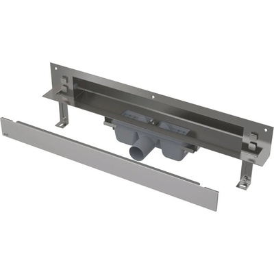 ALCAPLAST podlahový žlab s okrajem pro perforovaný rošt, bez zápachové uzávěry APZ2001-850 - Délka: 850 mm - Minimální tloušťka betonu: 85 mm - Celková stavební výška: 100-158...