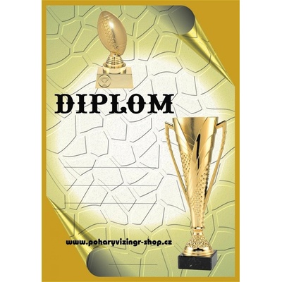 Amer.fotbal č.2. Diplom formátu A4 (250 g). Objednáváte NEVYPLNĚNÉ DIPLOMY(BEZ TEXTU) a chcete si je vyplňovat vlastní tiskárnou - napište do textu "BEZ LINEK". Objednáváte...
