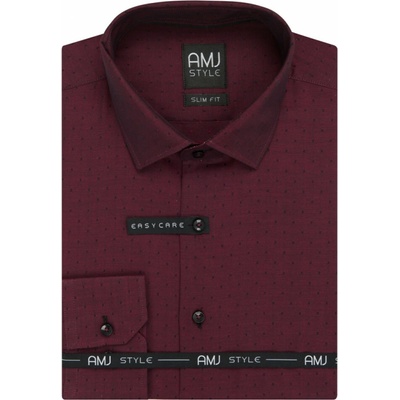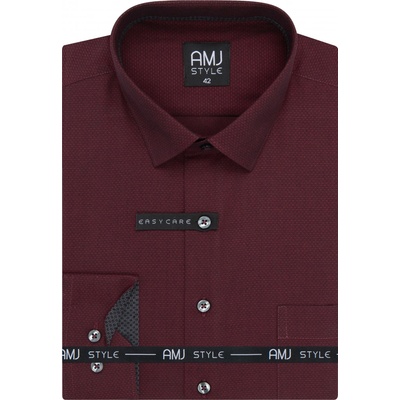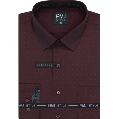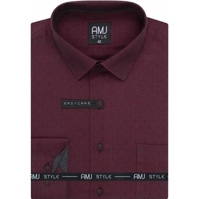 Košile s dlouhým rukávem od značky AMJ ve vínové barvě s jemným vzorečkem. Zapínání na šedé knoflíky. Košile bez kapsičky. Má projmutý střih SLIM FIT. Vnitřek límce v tmavě...
