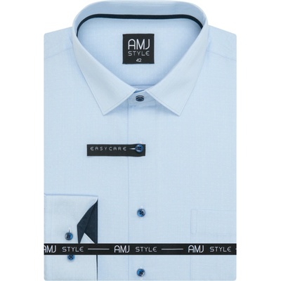Společenská košile s dlouhým rukávem AMJ v užším vypasovaném střihu Slim Fit. Košile ve světle modré barvě s jemnou strukturou. Zapínání na světlé knoflíčky. Ušita z 60 % bavlny...