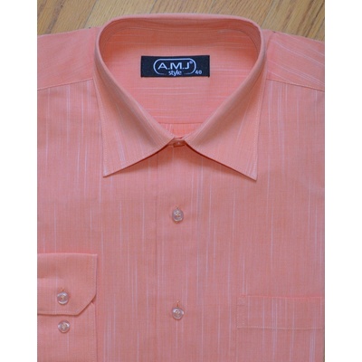 Košile s dlouhým rukávem od značky AMJ v oranžové barvě s jemným pruhovaným vzorem. Zapínání na světlé knoflíky. Na levé straně je kapsička. Má klasický rovný střih. Ušita z 65...