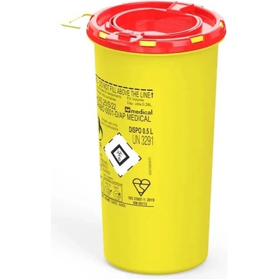 Kontejner DISPO 0,5L jsou určené pro umístění infekčního a kontaminovaného medicinálního odpadu jako jsou např. jako jsou použité injekční jehly, stříkačky, tampóny a jiné...