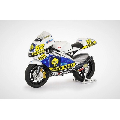 Sestavený kovový model závodního motocyklu. Motocykl značky Aprilia RSW 250LE s českým jezdcem Lukášem Peškem se v sezóně 2008 účastnil soutěže Mistrovství světa silničních motocyklů v kategorii do 250ccm v barvách týmu Auto Kelly - Česká...