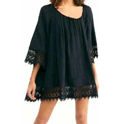 Vzdušné, lehké a jemné plážové šaty, ideální na nošení přes plavky v horkých letních dnech. Technické specifikace: - Materiál: polyester - Velikost: univerzální - Délka: 65 cm - Šířka: 95 cm - Barva: černá