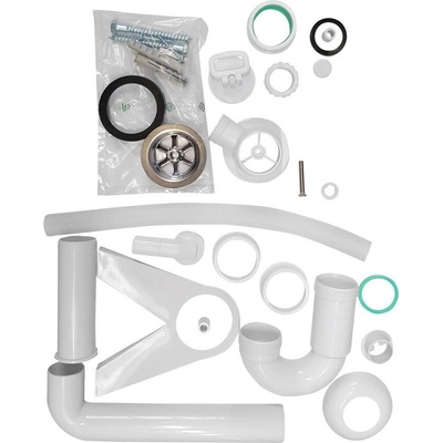 Výpust a sifon s přepadovou soupravou jsou součástí balení.