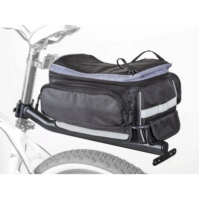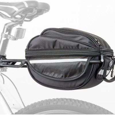 Lehká brašna s držákem na sedlovku, 2 samostatné kapsy, objem 6l, součástí pláštěnka (signální žlutá), reflexní doplňky, hmotnost 680g. Nosnost nosiče 5kg (nosnost je limitována pevností sedlovky).