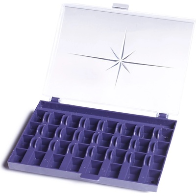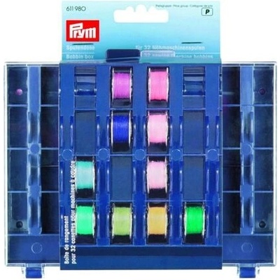 Box na 32 ks cívek - PRYM je praktický plastový box na 32 ks cívek různých rozměrů. Box je vhodný pro uskladnění všech druhů cívek vč. nízkých pro stroje Pfaff a Gritzner.