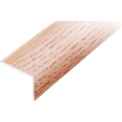 Schodová lišta s nalepenou pravou dýhou z různých dřevin a v různých úpravách.