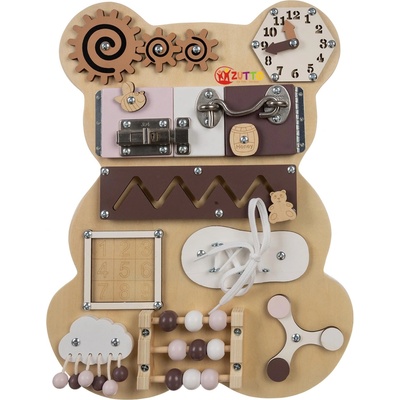 Senzorická manipulační deska Medvídek dřevěná 14 El Senzorická manipulační deska ve tvaru roztomilého medvídka je vynikající pomůckou podporující rozvoj kojenců a malých dětí....