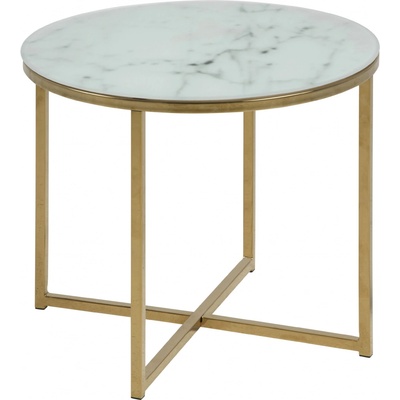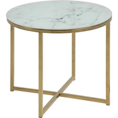 Kulatý skleněný konferenční stolek Alisma 50 cm bílý mramor glamour zlatý do obýváku Actona – moderní elegance pro váš interiér Kulatý skleněný konferenční stolek Alisma od...