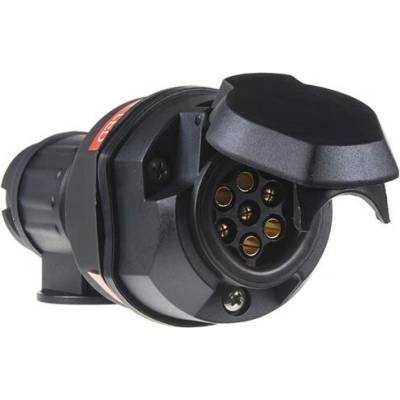 Praktický adaptér pro připojení 13-pólových zástrček k 7-pólovým zásuvkám. Speciální PVC, odolný proti stříkající vodě.