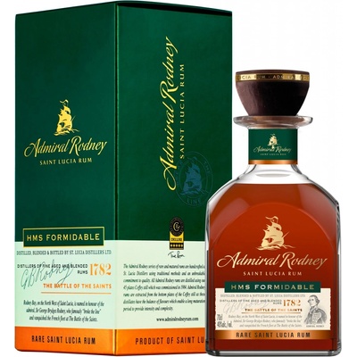 Admirál Rodney HMS Formidable je melasový rum z ostrova Sv. Lucie. Exkluzivně se stahuje pouze z nejspodnější části destilačního zařízení (Coffey still) jako těžší rum s bohatejšími chutěmi. Následně je odborně stařený smícháním 9-12 ročních rumů a zraje v ex-bourbon...