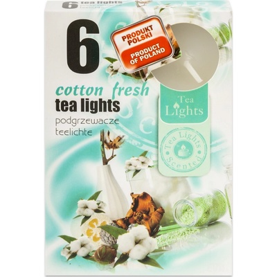 Vonné čajové svíčky s vůní Cotton fresh, 6ks v balení.
